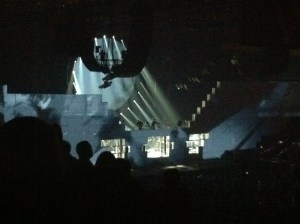 The show began with the band behind an already half built wall of white “bricks”, the center area still unbuilt to provide a view of the band. As the songs unfolded, the wall was built up brick by brick, until, by the intermission, it was a towering wall at least 30 feet high. Occasional openings provided opportunities for Waters to emerge for special songs like “Mother” and wall proved a superb backdrop for the projections (taken from the movie) that displayed on it. Mind boggling theatrics, including massive pyrotechnics, giant animated puppets, realistic war sound effects and larger than life images on an enormous wide screen (the wall). The finale, where the wall comes crashing down was so realistic that I looked to see if the bricks had actually fallen into the audience.